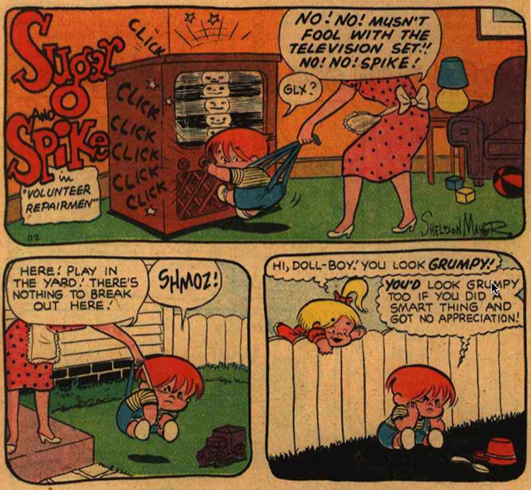 Long before the 1991 premiere of Nickelodeon's Rugrats, another set of diapers toddled across suburban carpets, snuck out of play-pens and spouted the secret language of baby-talk. Sugar and Spike appeared for the first time in their own self-titled comic book in the Spring of 1956.